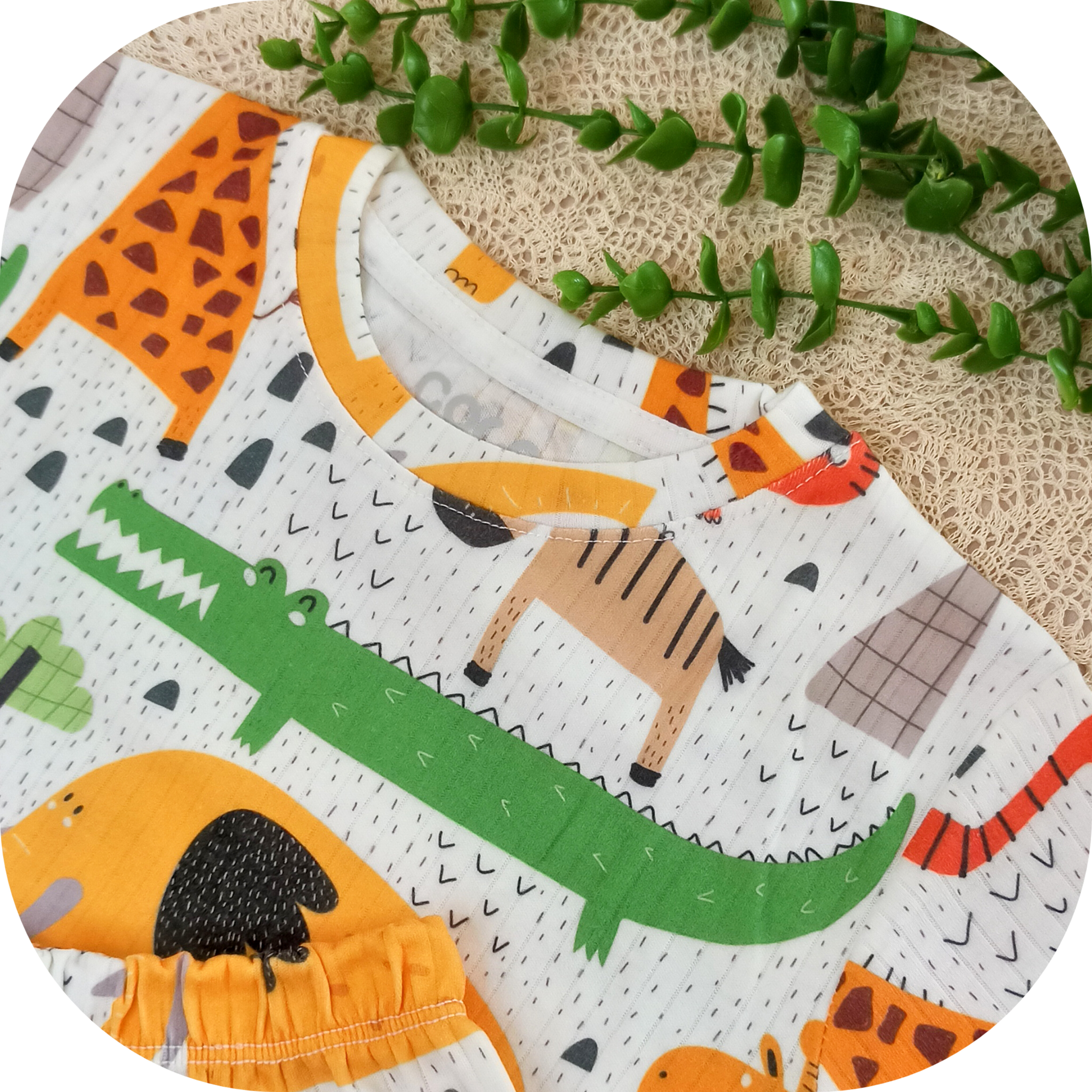 بلوز و شلوارک پسرانه مدل حیوان سایز 2 >>> قد بلوز 38- عرض بلوز 34 - قد شلوارک 29 سایز 3>>> قد بلوز 41- عرض بلوز 35 - قد شلوارک 31 ** توجه ** 1تا 2 سانت خطا در نظر بگیرید.